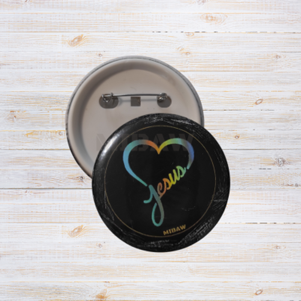 Description de l'article : Ce badge chrétien est bien plus qu'un simple accessoire ; c'est une déclaration de foi et un symbole d'amour et de dévotion envers Jésus-Christ. Avec un motif cœur tendrement dessiné et le nom de Jésus inscrit pour finaliser le cœur, ce badge incarne la spiritualité et l'amour chrétien dans toute sa splendeur.