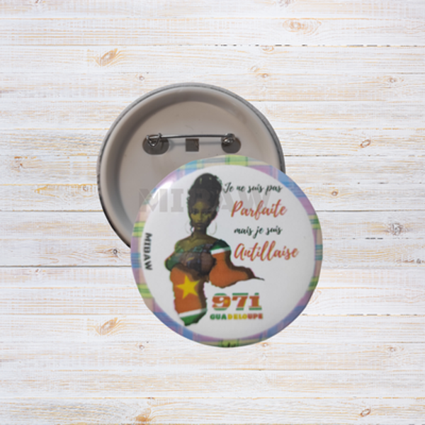 Badge Guadeloupe 971 - "Je ne suis pas PARFAITE, mais je suis ANTILLAISE."