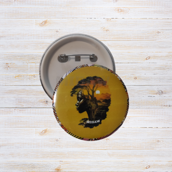Badge Femme Noire Africaine - Éclats d'Afrique : Le Crépuscule de la Savane