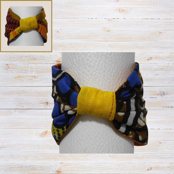 Plongez dans un univers de style infini avec le bracelet nœud-manchette MIBAW en tissu wax réversible, où deux mondes de couleurs se rencontrent dans un seul bijou captivant ! D'un côté, laissez-vous envoûter par un kaléidoscope de teintes chaudes, allant de l'orange éclatant au rouge bordeaux, en passant par le jaune ensoleillé et le moutarde dynamique. De l'autre côté, plongez dans l'élégance intemporelle d'un mélange sophistiqué de bleu roi, de blanc immaculé, de jaune vibrant, de marron chaleureux et de noir profond.